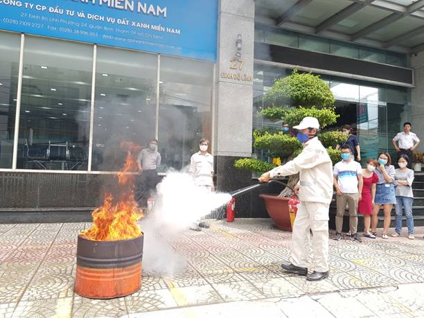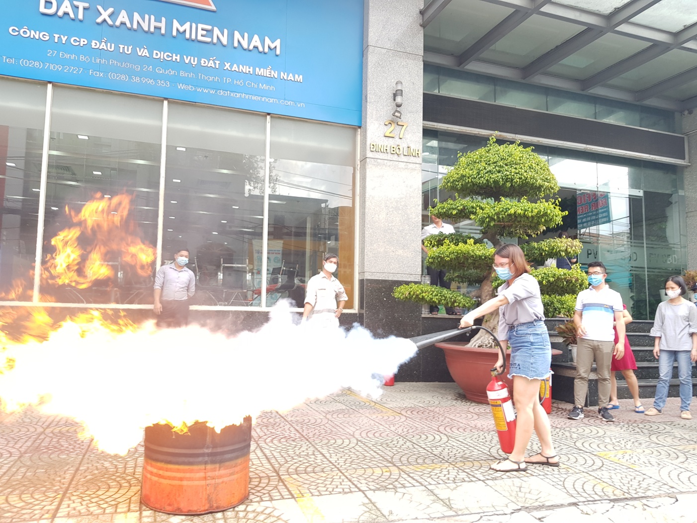 Sau buổi học lý thuyết, Đội PCCC cơ sở cùng với cán bộ nhân viên Công ty SBD được tham gia thực hành những kỹ năng như cách sử dụng các phương tiện bình bột, bình CO2 để dập tắt đám cháy,… Điều này không chỉ khiến buổi tập huấn trở nên thú vị mà còn giúp cán bộ nhân viên nắm vững những kiến thức đã được truyền đạt.