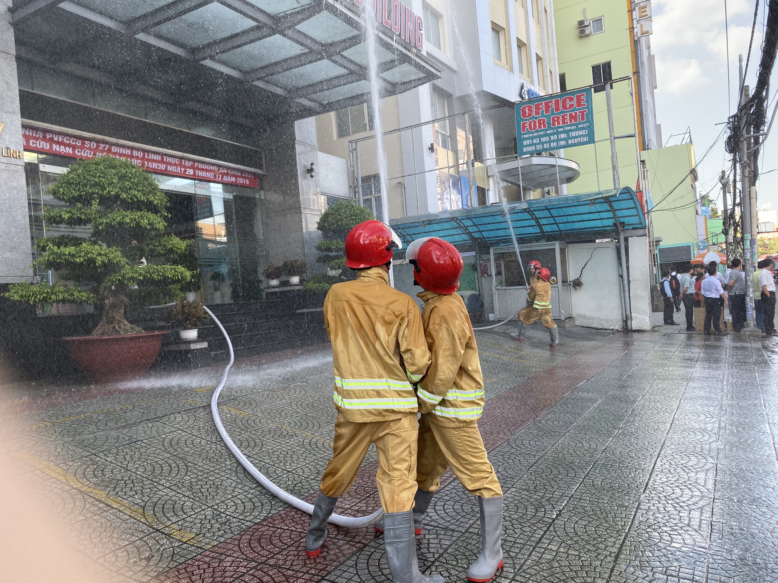Lực lượng Cảnh sát Phòng cháy Chữa cháy và Cứu nạn Cứu hộ – Công an Quận Bình Thạnh cũng đã có mặt kịp thời và phối hợp tốt với Lực lượng PCCC cơ sở tại Tòa nhà, tất cả những yêu cầu cho buổi diễn tập đều được hai bên thực hiện đầy đủ, đáp ứng yêu cầu đề ra, không xảy ra thiệt hại về người và tài sản.