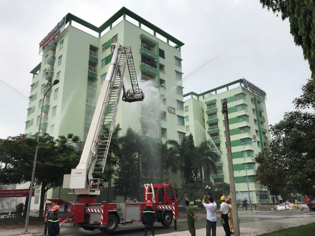 Tình huống giả định: Do sơ xuất khi đun nấu, tại căn hộ 09 , tầng 05, nhà G2 xảy ra cháy. Diện tích đám cháy khoảng 12 m2. Đám cháy tỏa ra nhiều khói, khí độc làm nhiều người đang sống tại tầng 5 của tòa nhà G2 bị ngạt, trong quá trình di chuyển tới nơi an toàn một số người bị thương và mắc kẹt tại một số tầng lầu của tòa nhà, không có khả năng tự thoát nạn, nguy cơ đám cháy ngày càng lan rộng. Ngay sau khi phát hiện đám cháy, lực lượng chữa cháy cơ sở đã tổ chức chữa cháy ban đầu, nhưng do đám cháy phát triển lớn và nhanh, vượt quá khả năng chữa cháy của cơ sở. Chỉ huy chữa cháy tại chỗ đã gọi điện cho lực lượng Phòng Cảnh sát PCCC Phú Mỹ đến chữa cháy.